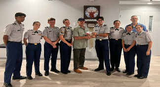 Director Tom Strok presents check for $500.00 to Pompano Beach JROTC cadets at Elk’s Lodge #1898.